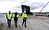 I dette gigantiske bassenget slippes smolten ut til våren – i friskt havvann hentet rett inn fra havet. Fra venstre: Byggeleder Rune Kristian Nilsen, administrerende direktør Martin Rasmussen og finansdirektør Bjarne Martinsen.