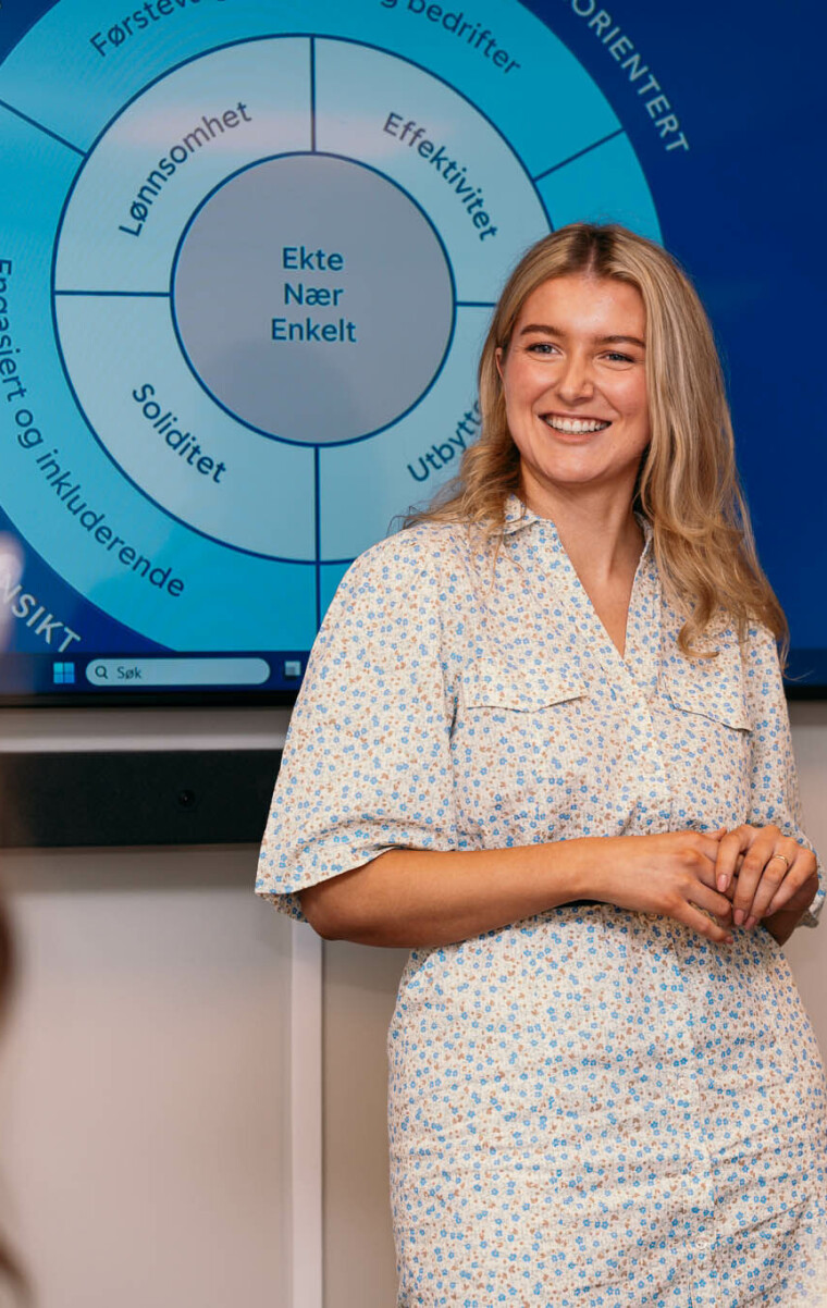 – I Regnskapshuset jobber vi med alle typer bedrifter store og små. Blant annet innen havbruk, industri, entreprenører, klesbutikker og mye annet. Hadde jeg jobbet i økonomiavdelingen til kun en av disse bedriftene, hadde jeg ikke fått den samme kunnskapen, erfaringen og mulighetene jeg får i dag.